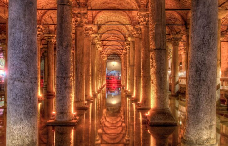 The Basilica Cistern Museum is one of the most significant cultural landmarks through which we can trace the grandeur of Istanbul’s historical legacy. Commissioned by Eastern Roman Emperor Justinian I (527–565), this vast underground cistern was dubbed the “Sunken Palace” by the public due to the countless marble columns rising from the water. In Latin, it is referred to as Cisterna Basilica, owing to its location beneath the former Stoa Basilica, hence also commonly known as the Basilica Cistern.