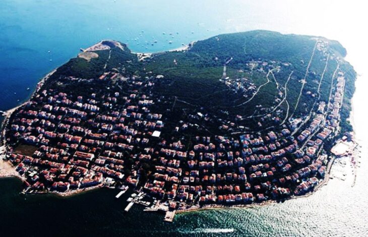 Kınalıada is one of the smallest of Istanbul’s Princes’ Islands, measuring approximately 1.5 by 1.1 kilometers. Its name, meaning “Henna Island,” derives from the island’s reddish hue, once visible from afar when its hills were covered with low maquis vegetation. The island features three main hills: Çınar Hill, Teşvikiye Hill, and Monastery Hill.